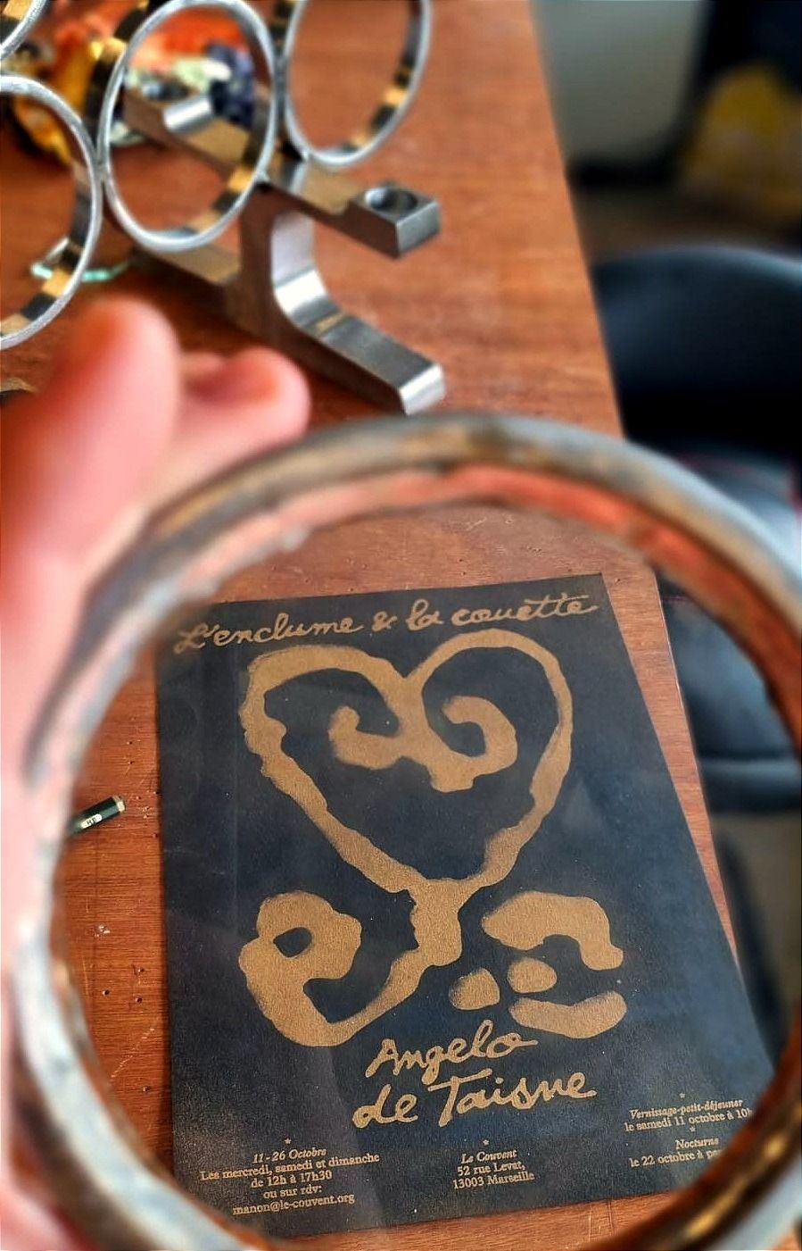 L’Atelier du Vitrail du Gapeau a accompagné le designer et architecte Angelo de Taisne sur un travail créatif de verre et d'acier. Cela s'est déroulé dans le cadre de son exposition L'enclume & la Couette, pour le festival de design @tangible_festival initié par @fotokino