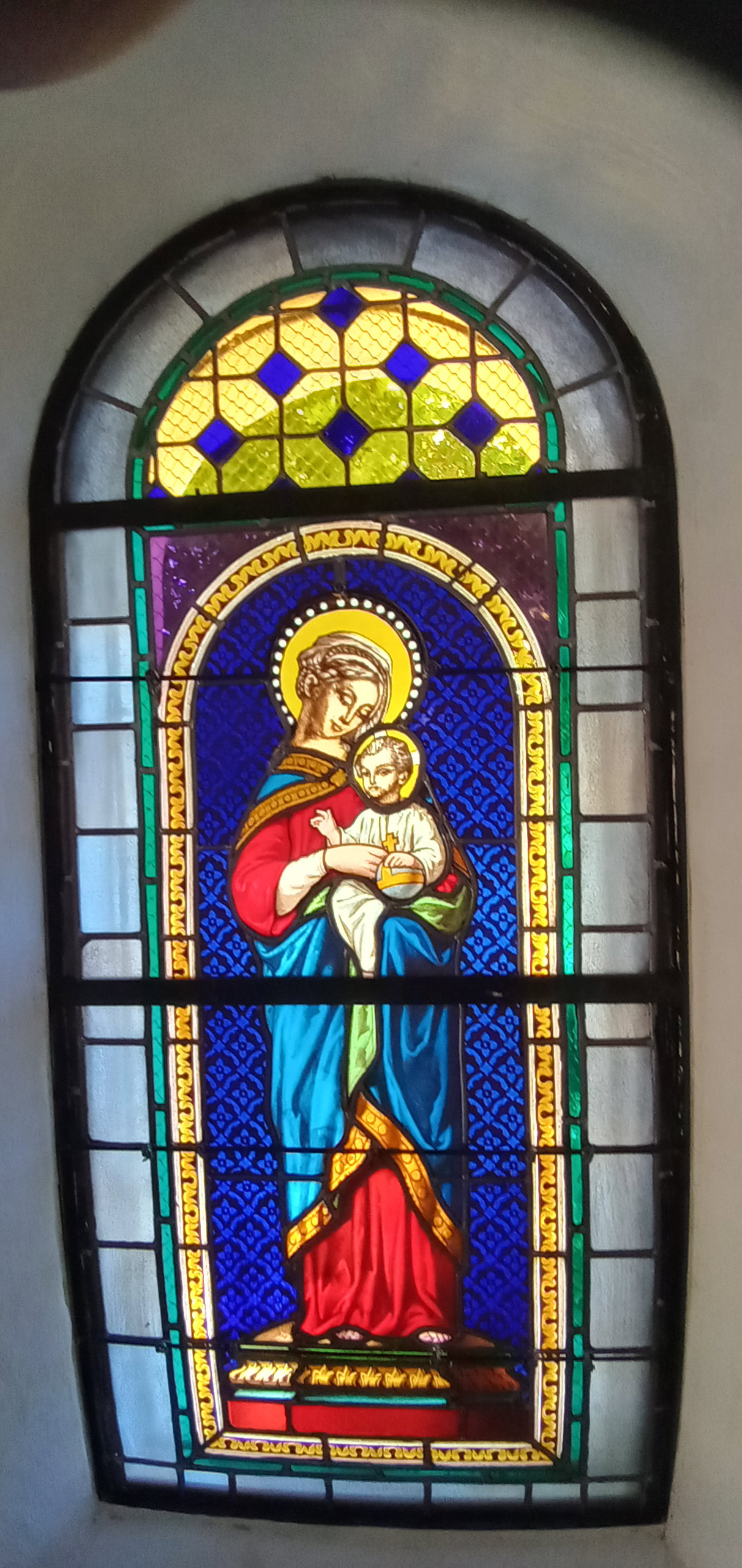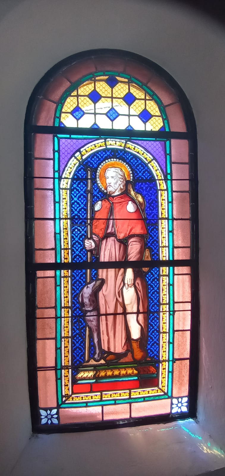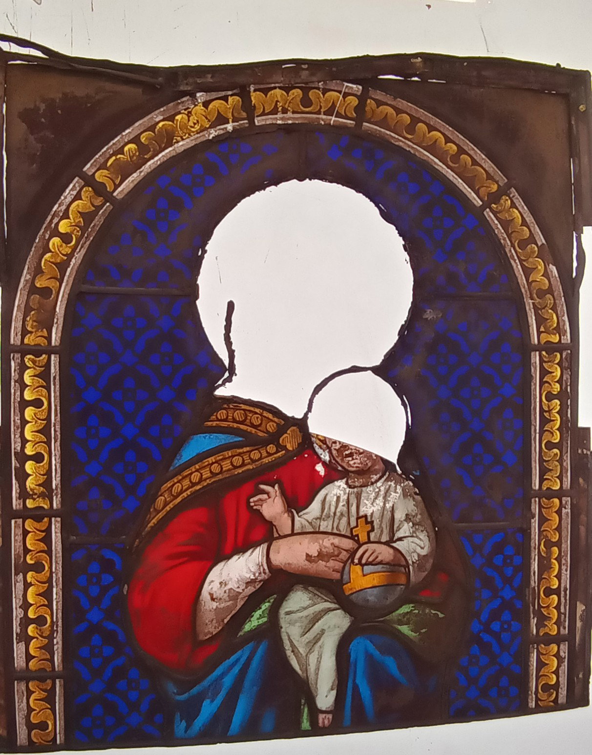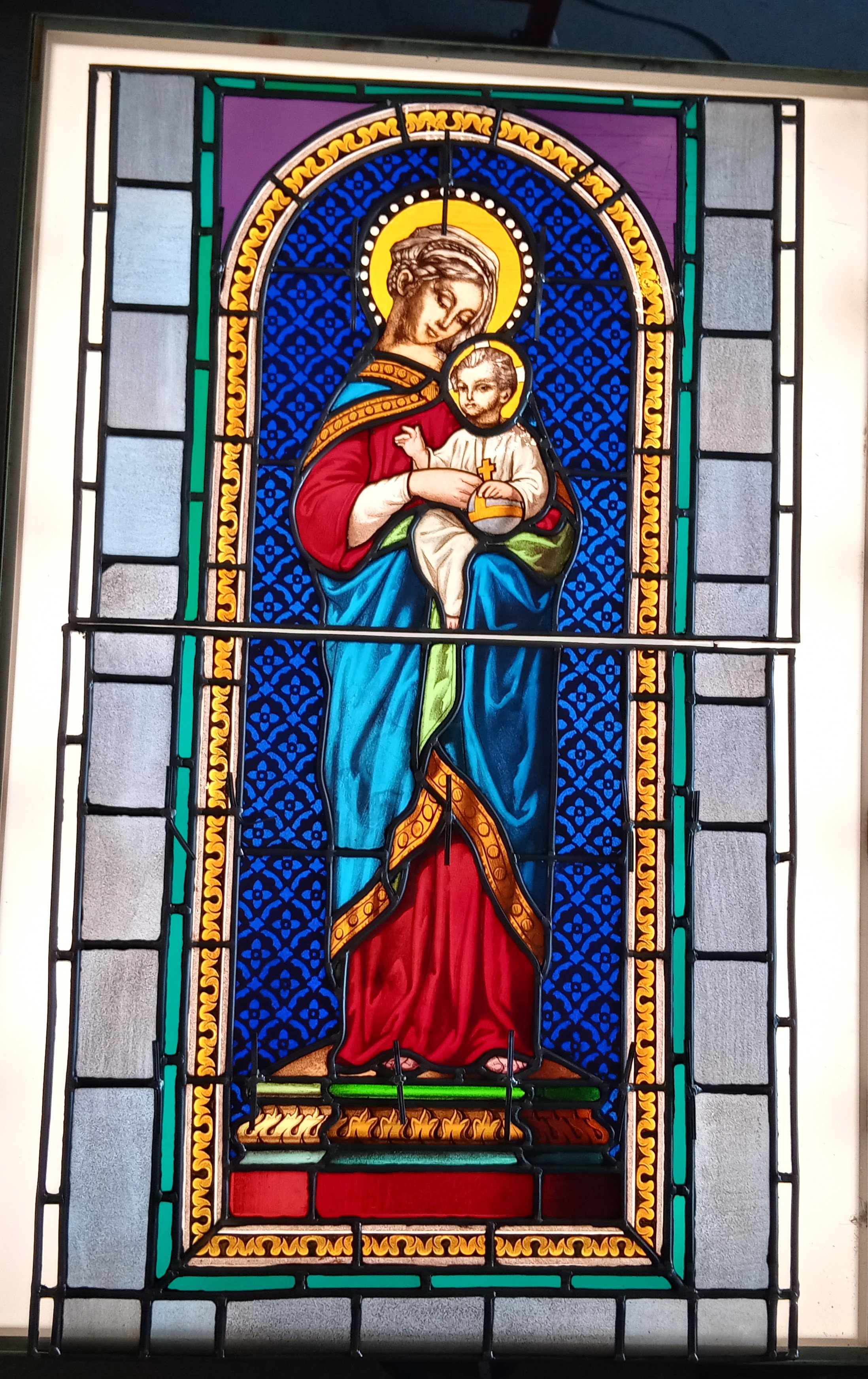 Eté 2025, restauration en association avec la vitrailliste Sylvaine TOSI, de deux vitraux du 19 ème siècle à la chapelle Saint-Roch (Sollies-Pont).