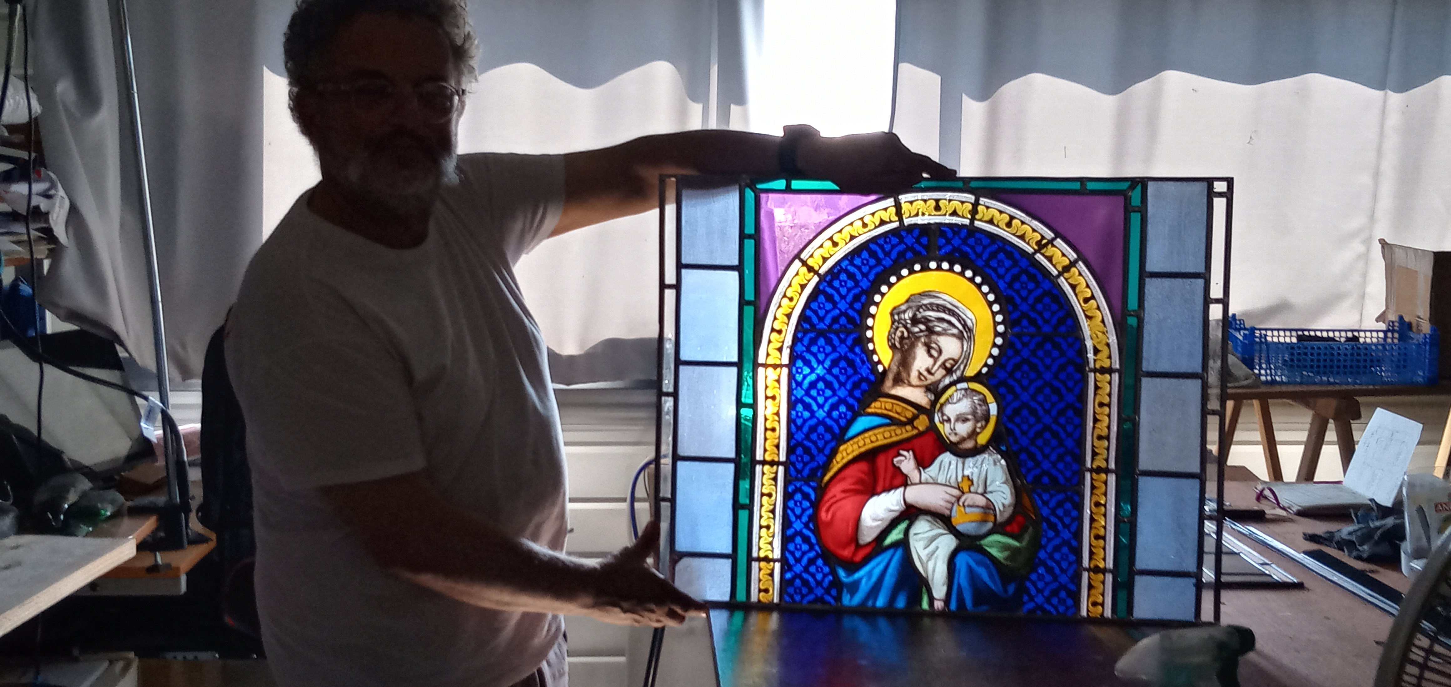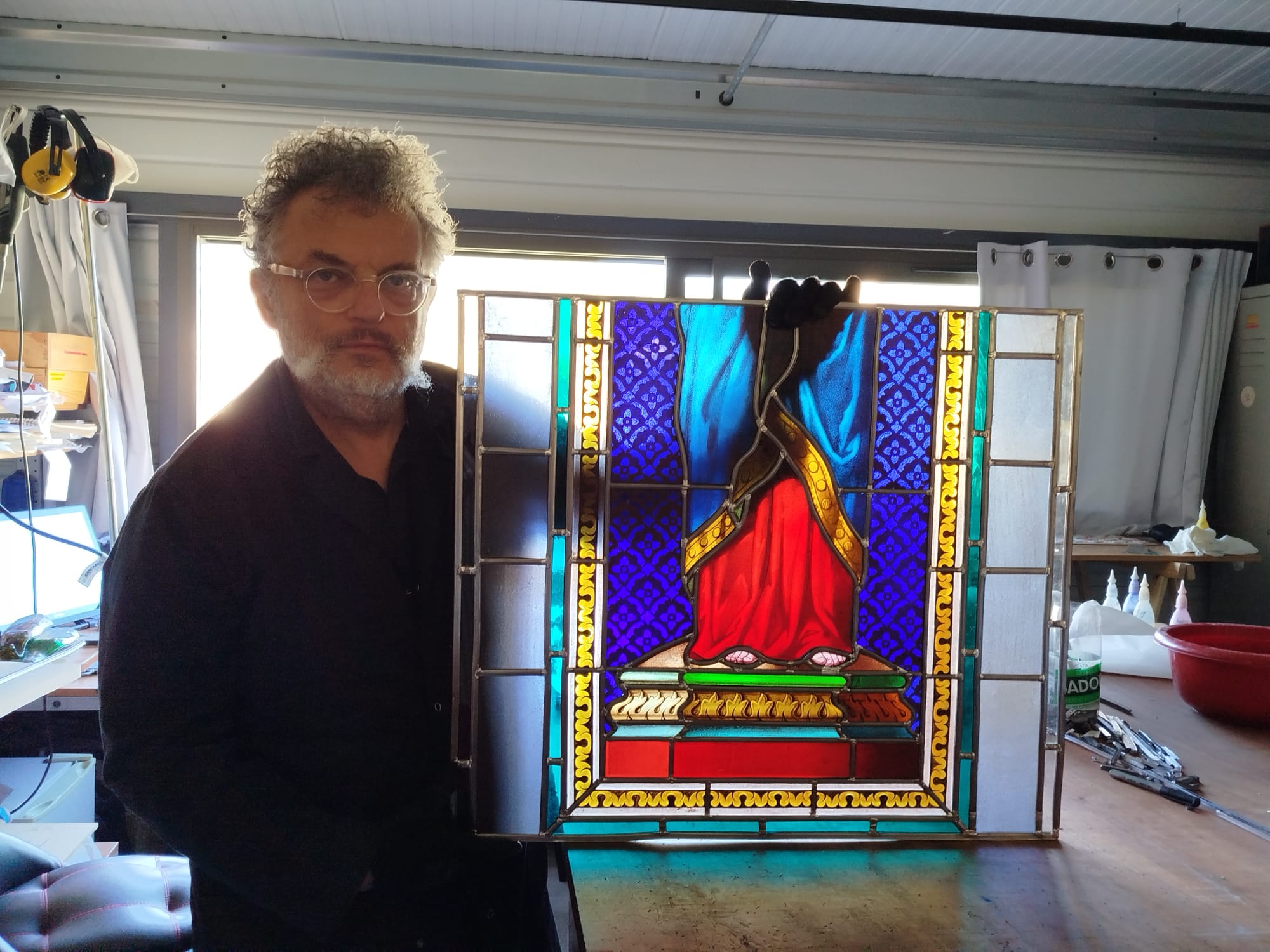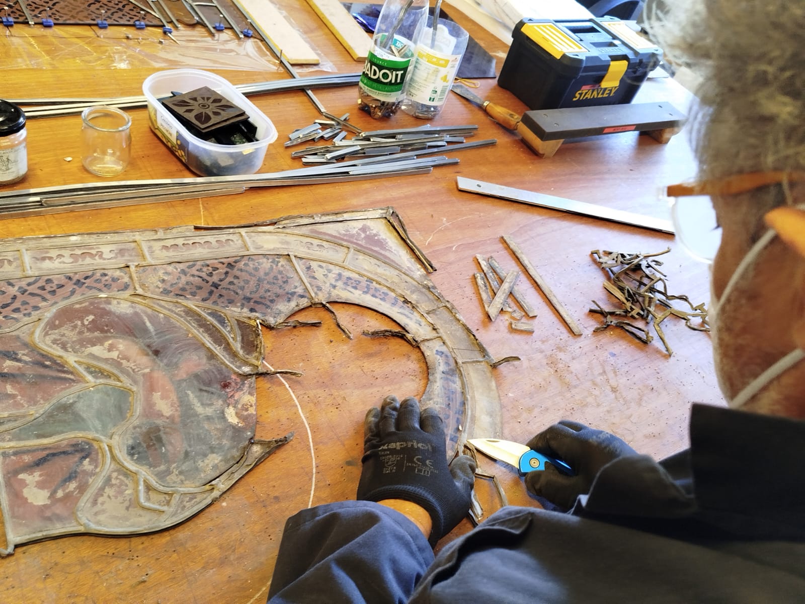 La restauration de vitraux anciens est un élément fondamental dans l'activité de l'artiste vitrailliste.